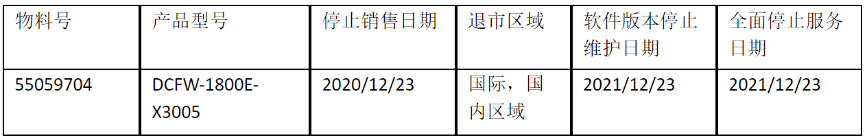 北京神州數(shù)碼狗萬電競(jìng)信息技術(shù)有限公司正式通知您, 以上DCFW-1800E-X3005下一代防火墻(55059704)將于2020年12月23號(hào)停止接收新的訂單(具體日期見上表),不再供貨。給您帶來的不便,敬請(qǐng)?jiān)彙?/font>