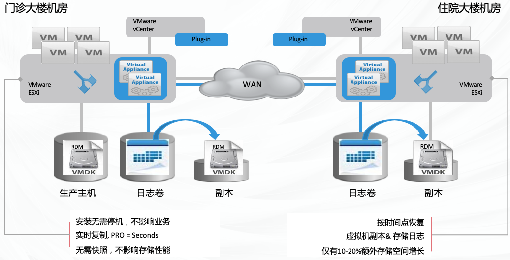 神州狗萬電競(jìng)連續(xù)數(shù)據(jù)保護(hù)與容災(zāi)解決方案,可以在確保醫(yī)院HIS/LIS等核心業(yè)務(wù)不中斷的基礎(chǔ)上,最大程度減少邏輯錯(cuò)誤造成的數(shù)據(jù)丟失量 做到RPO=O,在最短時(shí)間內(nèi)恢復(fù)數(shù)據(jù)和業(yè)務(wù),做到RT0<1小時(shí)。